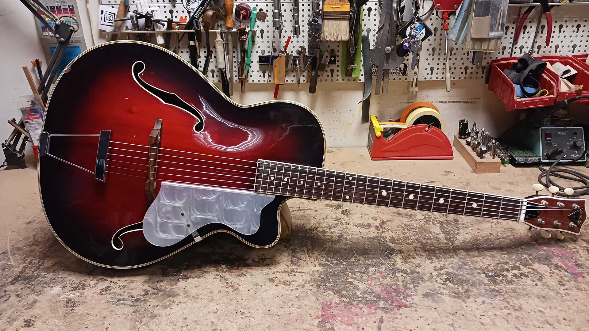 A refretting was also necessary on this Eko jazz.